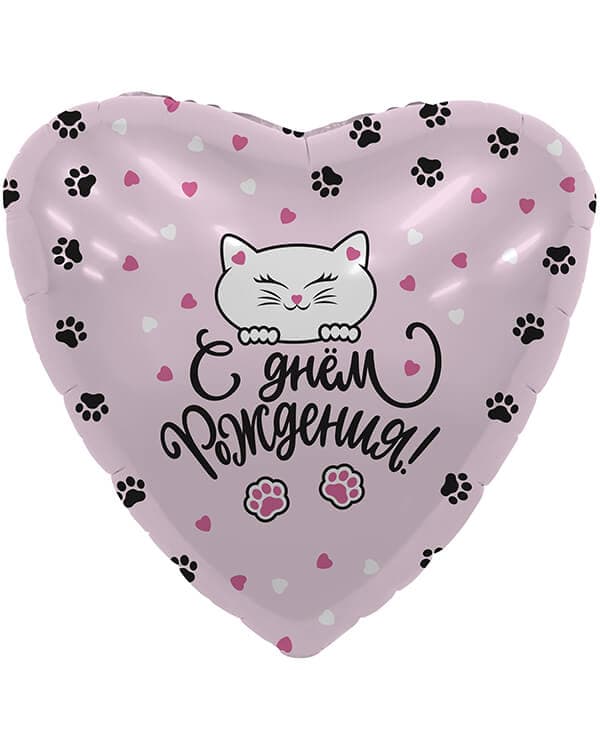 Главная страница » Магазин » Шарики из фольги » Шары с днем рождения » Сердце С Днем Рождения! (котенок и лапки)